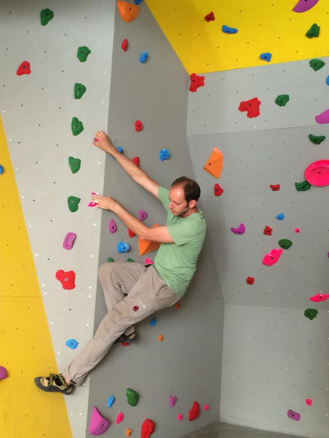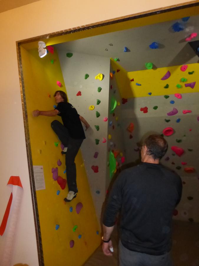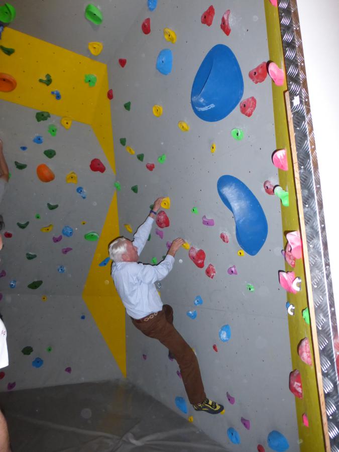 Un bloc de grimpe, voeu exprimé par les jeunes (de tous âges!) comme priorité pour marquer le 150e, a pu être créé dans un espace libéré suite aux transformations du local.Il comprend près de 300 prises et 20 voies de tous niveaux.