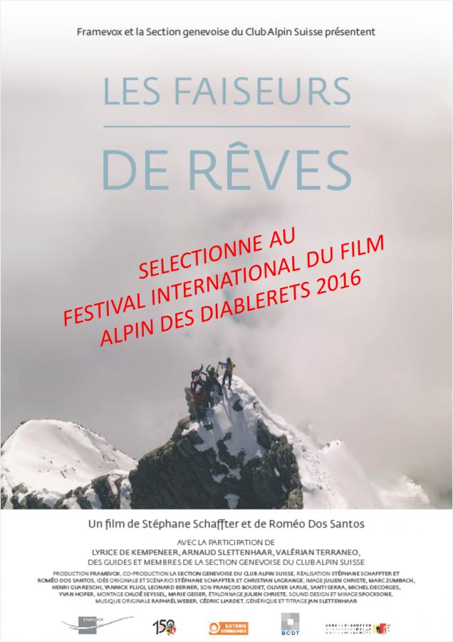 Il a été sélectionné pour le 47ème festival international du film alpin 2016 des Diablerets [voir la bande annonce]