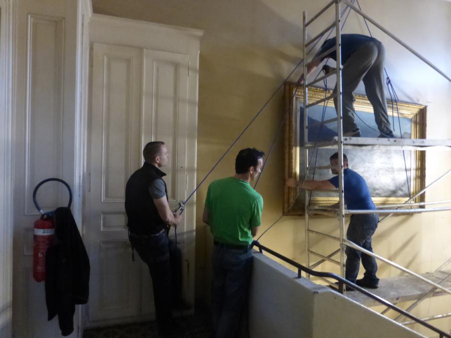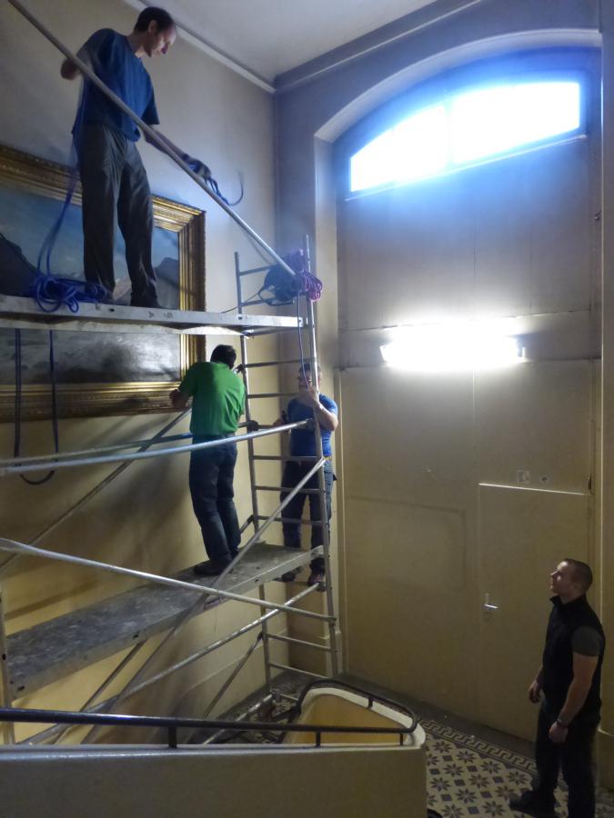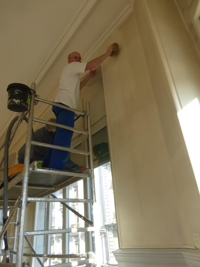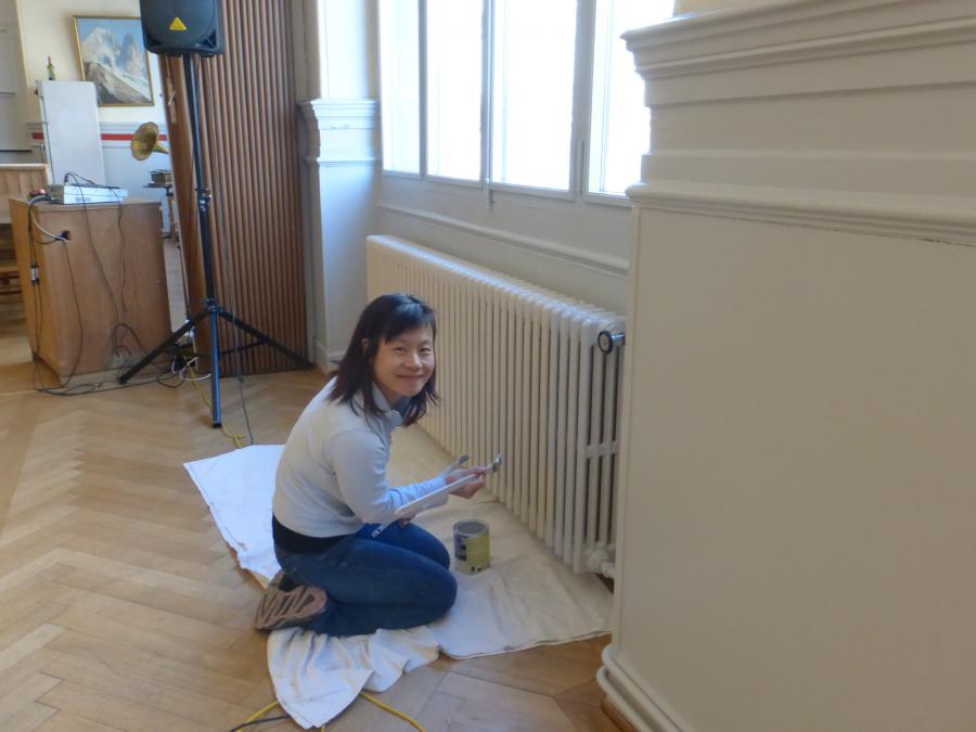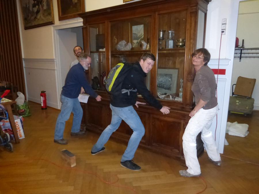 - Entrée, cage d’escaliers et grande salle rénovés et repeints aux couleurs gris (rochers) et blanc (neige), avec des bandes et filets rouge (rappelant l’écusson du CAS et le drapeau suisse)