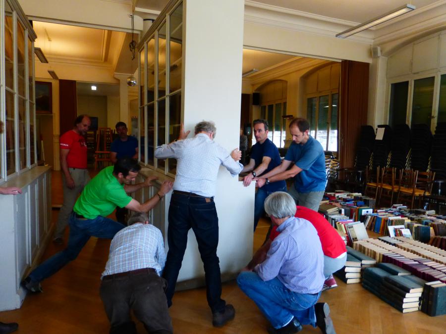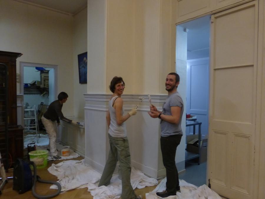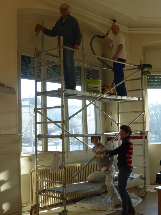 - Re-agencement de la grande salle pour créer plus d’espace et aménager un ensemble avec la bibliothèque pour les réunions ou la lecture