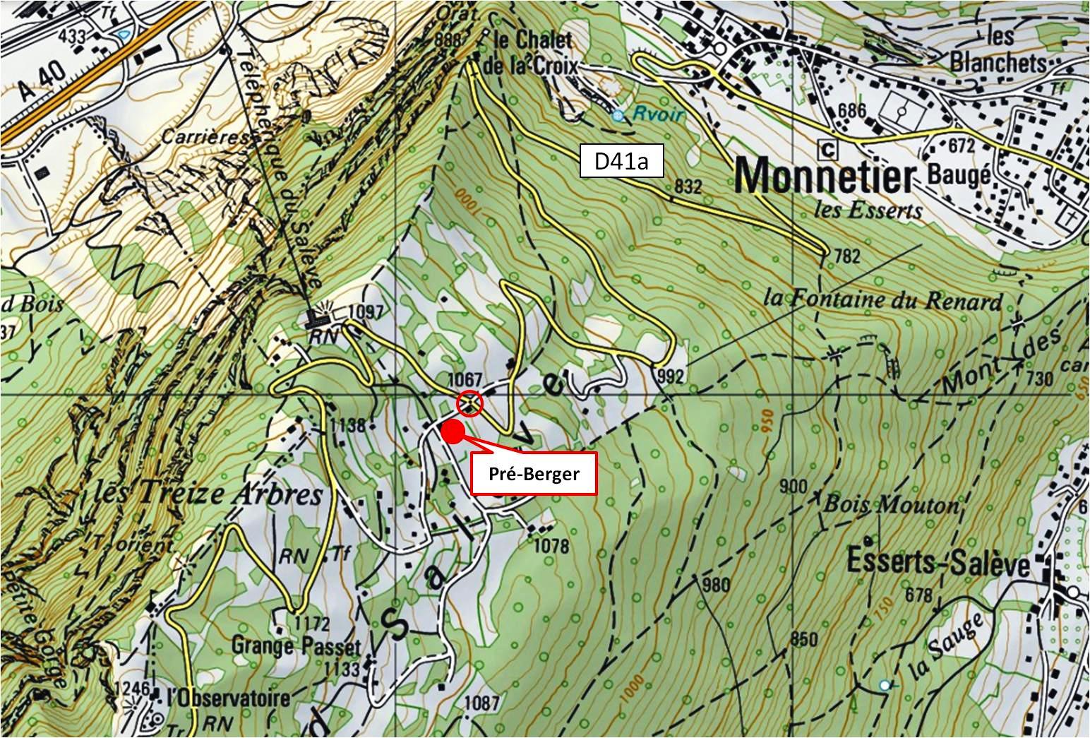 Vous pouvez rejoindre le chalet par de nombreux sentiers au départ de Collonges-sous-Salève, du Pas-de-l'Echelle ou de Monnetier-Mornex (cliquer pour voir le plan)